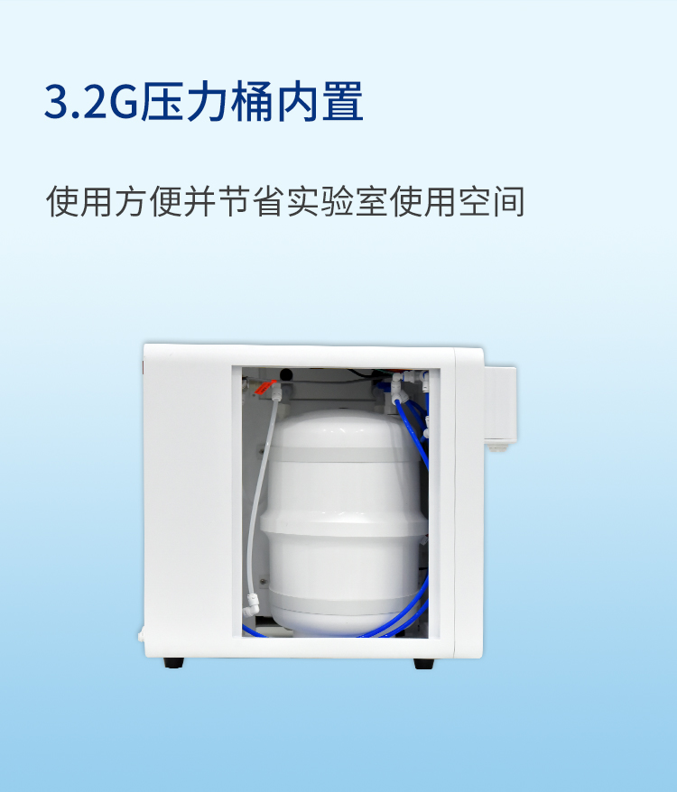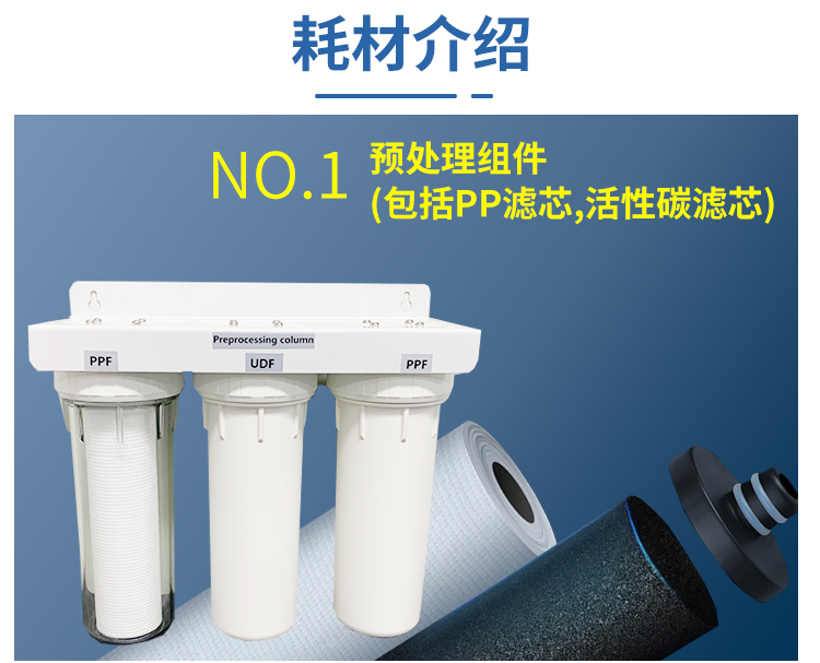 纯化系统: 预处理单元外置软化过滤器(原水硬度较高的地方建议选配);1μm深层PP滤芯*2+精密活性炭滤芯;